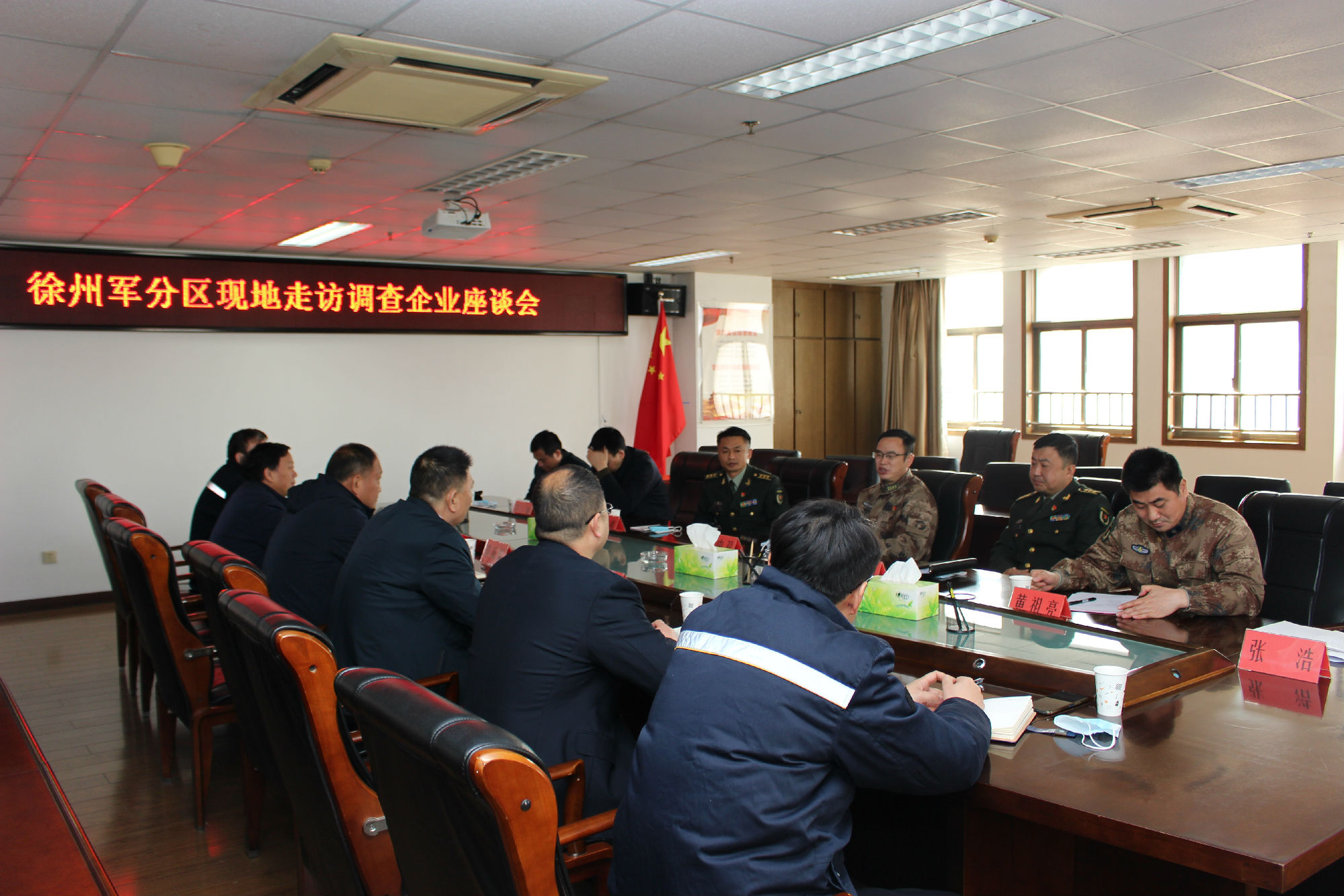 2月22日上午,徐州市軍分區(qū)政委李中雙,泉山區(qū)政府副區(qū)長王龍,泉山區(qū)人武部部長趙超,政委杜法祥,參謀黃祖亮、參謀張學(xué)儒一行到集團(tuán)走訪座談。集團(tuán)總經(jīng)理馮陸陸,常務(wù)副總經(jīng)理蔣成彪,副總經(jīng)理丁玉華,紀(jì)委書記、工會主席袁夫松參加會議。