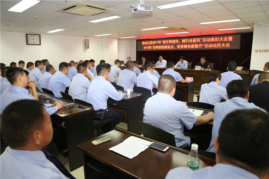 5月10日上午,有限公司召開“2017‘創(chuàng)文明城市、樹行業(yè)新風(fēng)’總結(jié)表彰暨2018‘文明創(chuàng)建新起點,優(yōu)質(zhì)服務(wù)新提升’活動動員大會”,主要任務(wù)是對全公司文明城市創(chuàng)建常態(tài)長效工作進行部署,動員全體干部員工認(rèn)清形勢、再鼓干勁,開啟文明創(chuàng)建新征程,再創(chuàng)優(yōu)質(zhì)服務(wù)新提升。公司董事長、總經(jīng)理杜紅軍,工會主席竇同銀,調(diào)研員張同剛、祖伯鴻,相關(guān)部室負(fù)責(zé)人,營運公司經(jīng)理、書記、服務(wù)主管,車隊長、先進個人代表等87人參加了會議。